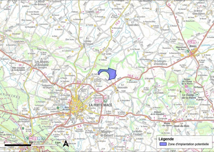 Il s’agit d’un projet d’implantation de 2 à 3 éoliennes localisé à 35 kilomètres au Nord-Ouest de Alençon sur la commune de Beauvain.